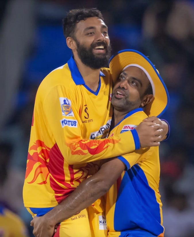 I was sat with the Royals lead owner Manoj Badale. If we can keep them under 160 we’ll win, he said. Dhoni had other ideas. He took the nervy looking left arm seamer Jaydev Unadkat for 28. Six after six flew into the joyful, yellow-clad Chennai fans. They went mental. If you thought Dhoni’s theatrical entry was loud, you should have heard his triumphant exit. (Chennai won the match by the way, by eight runs, so Badale’s assessment was probably right.)
