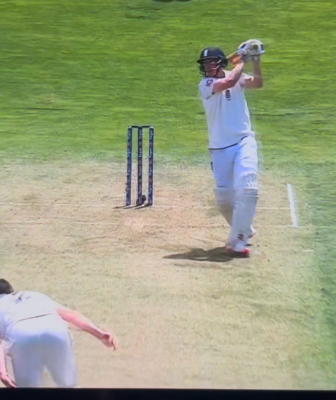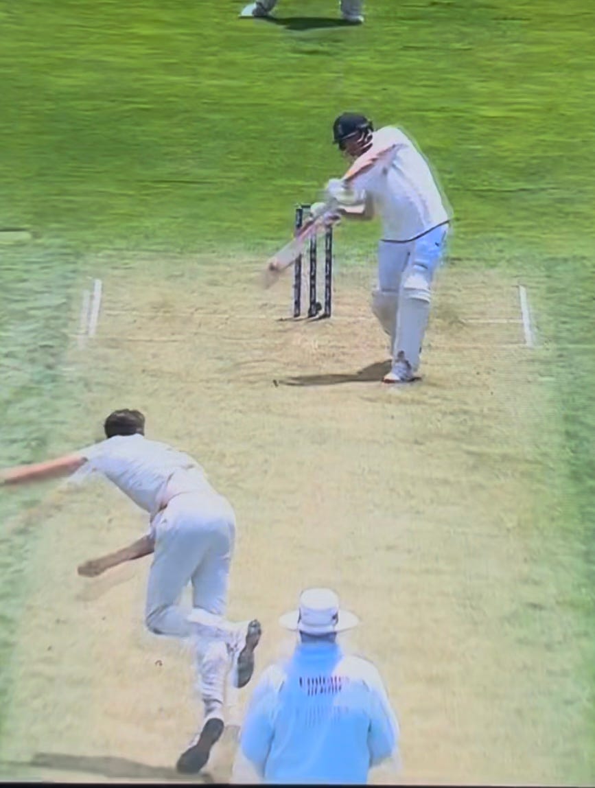 Now, as we discuss in the ANALYST PODCAST we have two destructive players doing the exact opposite. Harry Brook and Travis Head prefer to stay legside of the ball and flay it through, or over, the offside. They don’t seek to ‘own’ the off-stump channel, they try to obliterate it. It is a significant departure from batting conventions and, just as Richards, Pietersen and Smith in particular did before, is again transforming the game. It is laden with risk as this approach is mostly premeditated, leaving the stumps largely unprotected, and the head ends up not in line with the ball (see Brook below) which has always been one of the first rules of batting (ie make sure your head is going towards the ball, even if your feet don’t.)