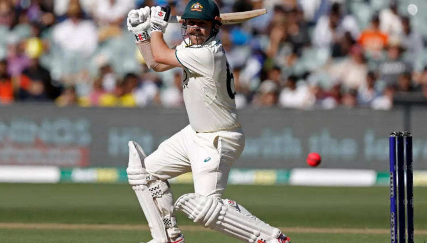 Travis Head crashes another Indian delivery through the offside in Adelaide